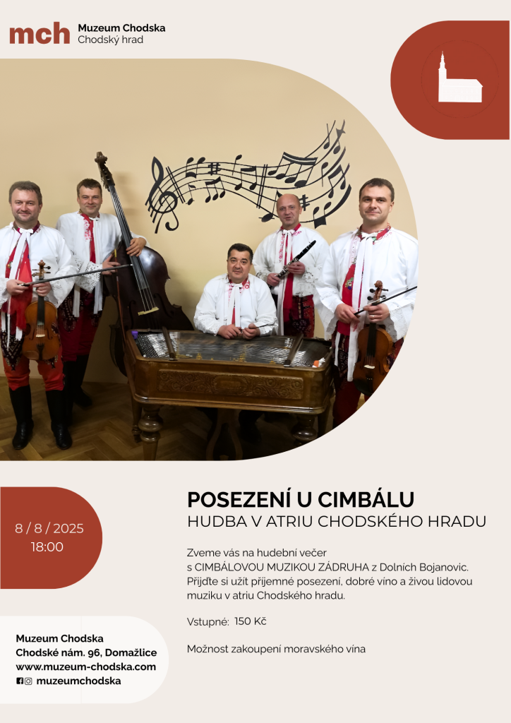 V atriu Chodského hradu proběhl 8. srpna jedinečný hudební večer s cimbálovou muzikou Zádruha z Dolních Bojanovic.